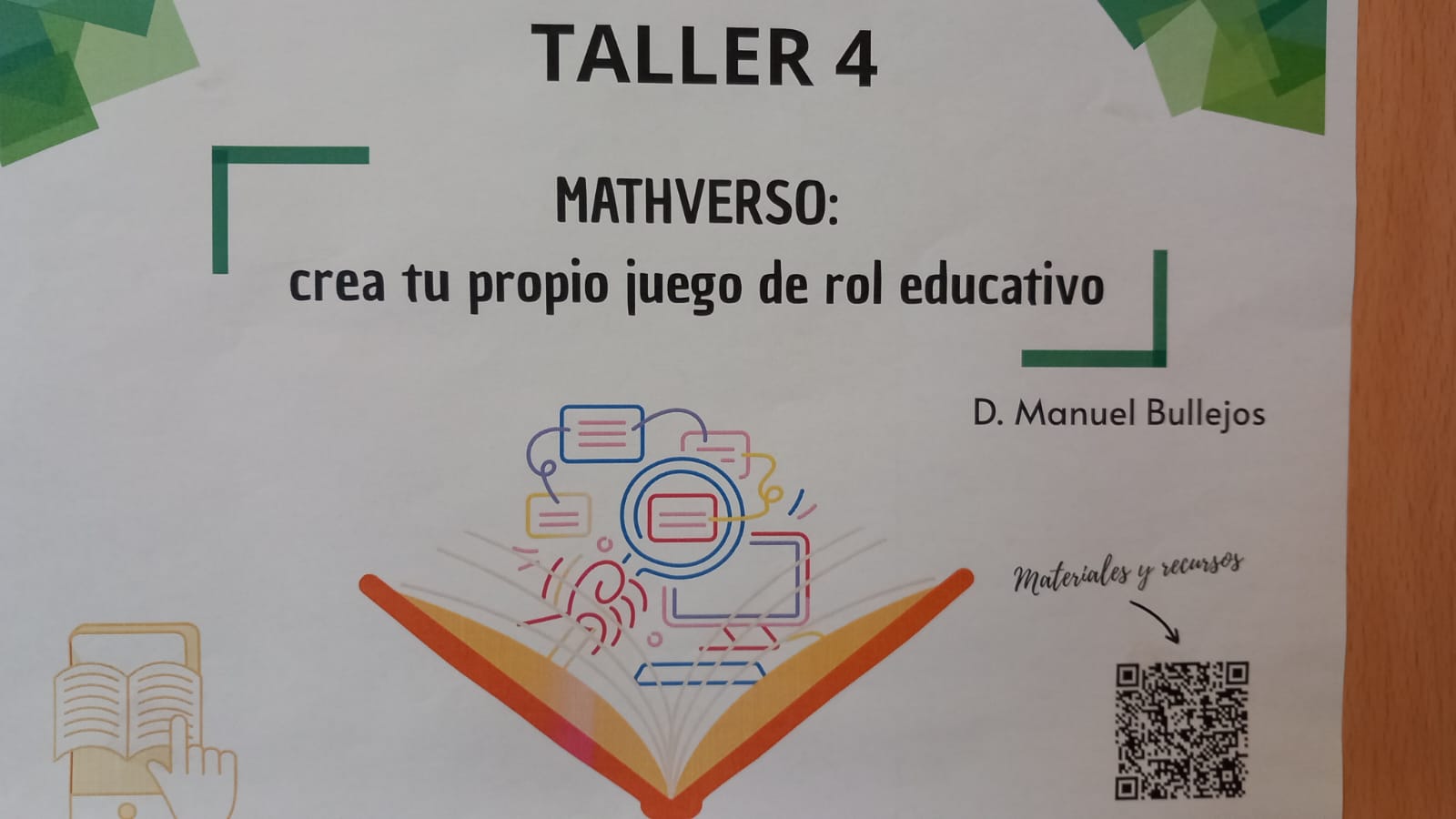 He tenido el placer de impartir el taller “Mathverso: Crea tu propio juego de rol educativo”, donde, tomando como referencia mi juego Ecuación Mortal 2: el juego de rol para resolver ecuaciones, los y las participantes han diseñado sus propios juegos de rol educativos.