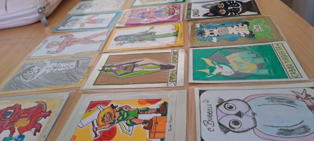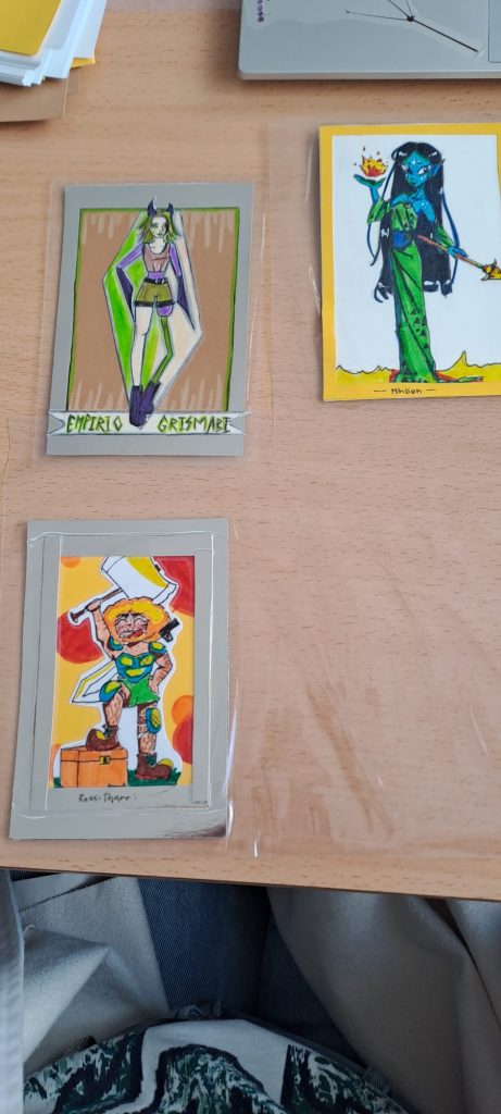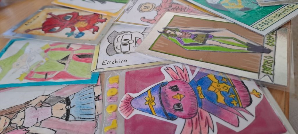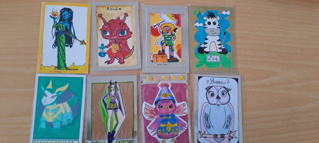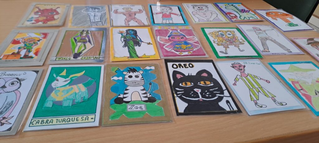 Ya habíamos comentado anteriormente que la Aventura que estábamos viviendo en 3ºESO con Ecuación Mortal 2, el juego de rol de resolver ecuaciones, era multidisciplinar este año y forma parte de una Situación de Aprendizaje Mates-Lengua-Inglés-Plástica. Ya habíamos visto que con Lengua habíamos celebrado un juicio con mi compi Mercedes Álvarez (ya hablaremos de ese disfraz de juez… ) y con Inglés escribiendo cartas a las poderosa hechicera Pains Wheels con la teacher Lola Ruedas. Pero nos faltaba la parte de Educación Plástica y Visual con la profe Irene Becerra. Tenían que dibujar a sus personajes y hacer cartas (naipes) con ellas. Y han quedado superchulos. Os comparto las obras de arte que han realizado😄