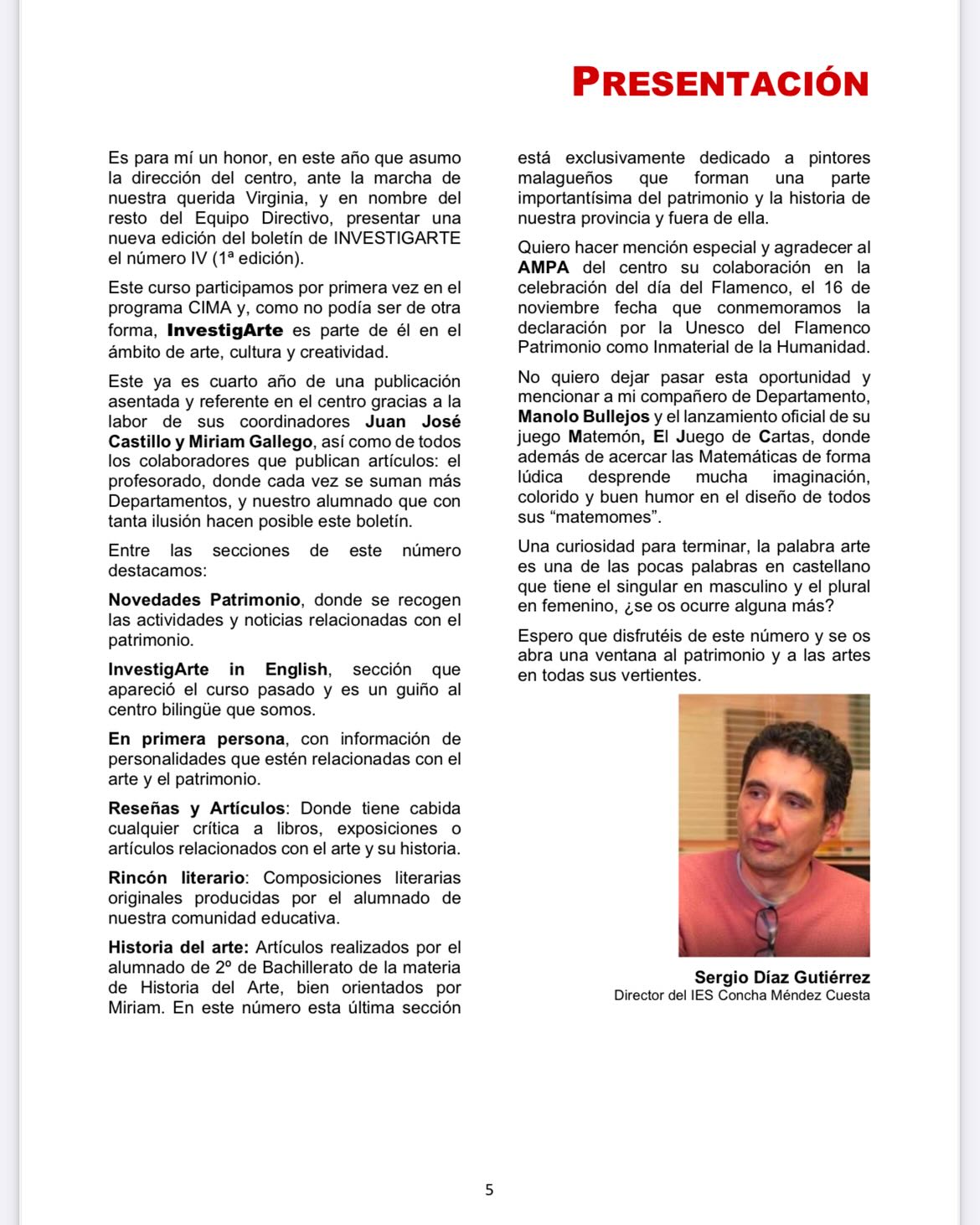El Boletín del Primer Trimestre del curso 2024-2025 de InvestigArte del IES Concha Méndez Cuesta, abre con Matemón en portada y entrevista al creador, realizada por mi compañera Maite Sánchez, como primer artículo . Muy agradecido también a D. Sergio Díaz, director del centro, por las palabras dedicadas, tanto al juego como al autor, en la presentación del número. ☺️