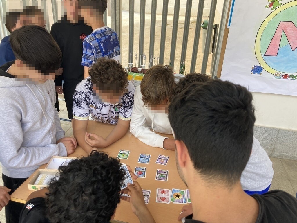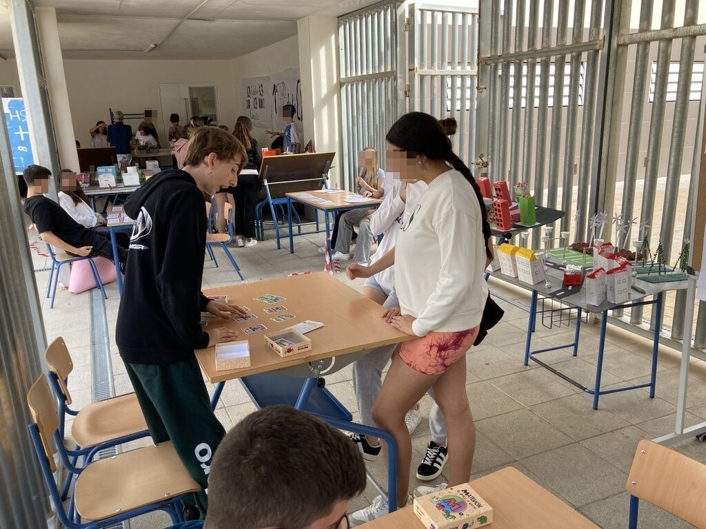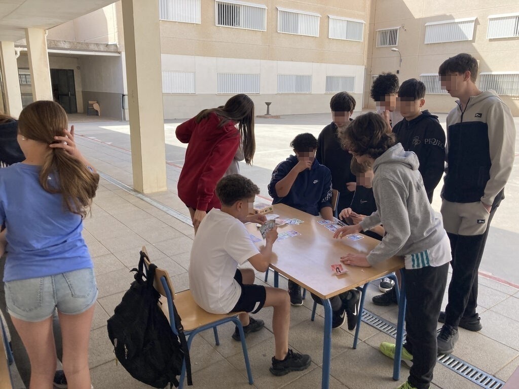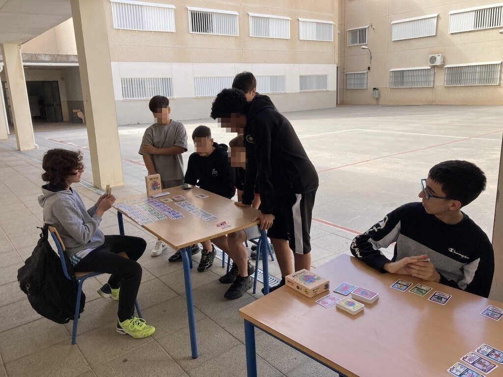 Alumnado experto en el juego, participantes habituales de los talleres de Matemón (que se celebran todos los martes y jueves durante los recreos), se encargó de explicar las reglas a todos los compañeros y compañeras que se acercaron. ¡Incluso estuvieron enseñándoselo a varios profes!😂