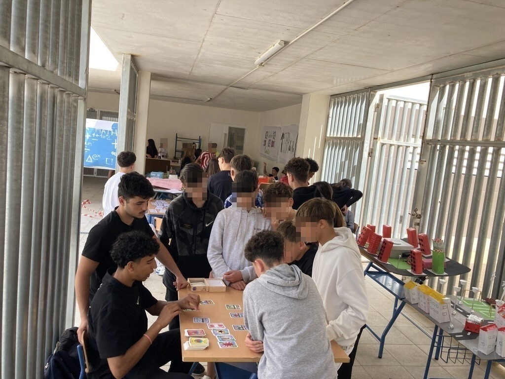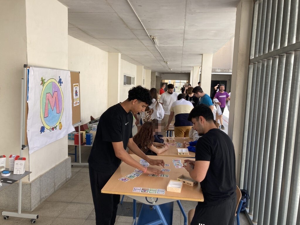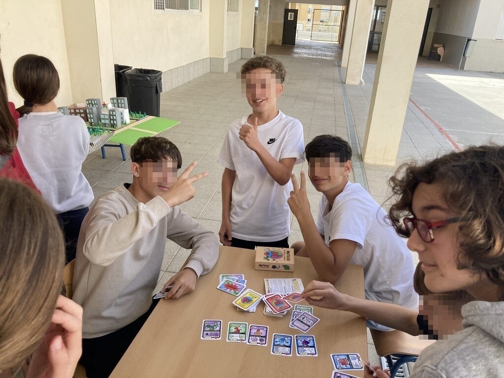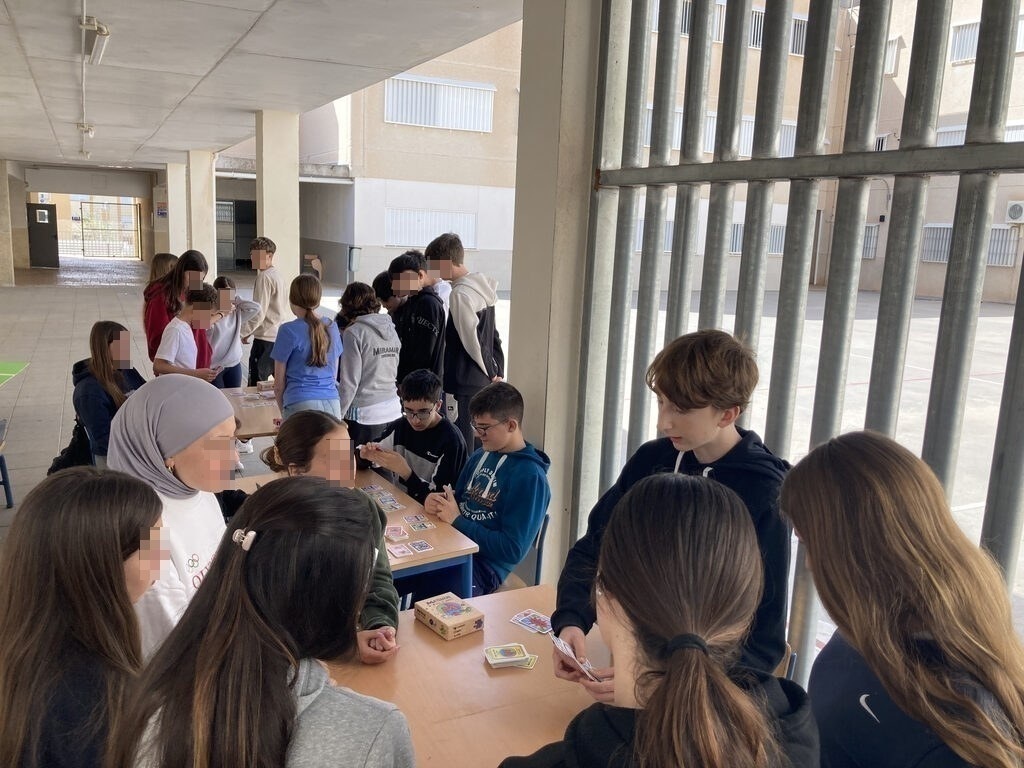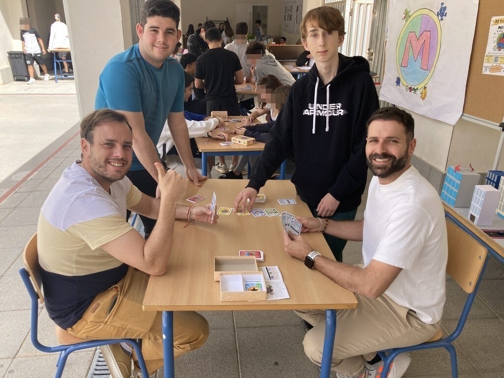 Alumnado experto en el juego, participantes habituales de los talleres de Matemón (que se celebran todos los martes y jueves durante los recreos), se encargó de explicar las reglas a todos los compañeros y compañeras que se acercaron. ¡Incluso estuvieron enseñándoselo a varios profes!😂