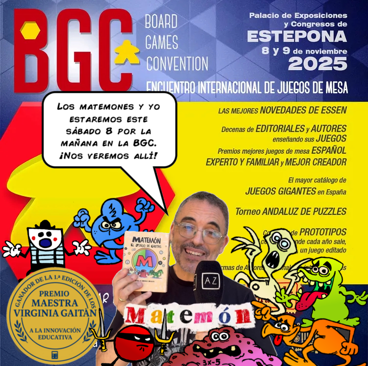 Próximamente Matemón en la BGC 2025 El próximo sábado 8 de noviembre los matemones estarán en la BGC 2025 de Estepona. ¡NO OS LO PERDÁIS! 😃🔥🚀 nº de visitas: 5