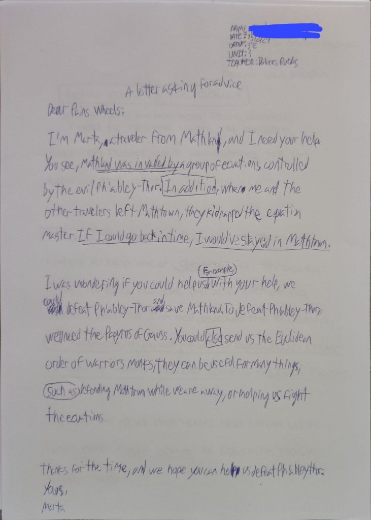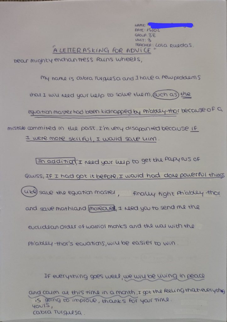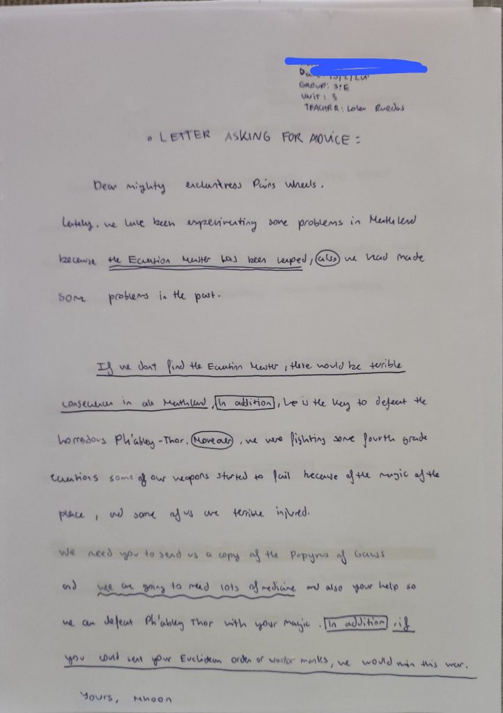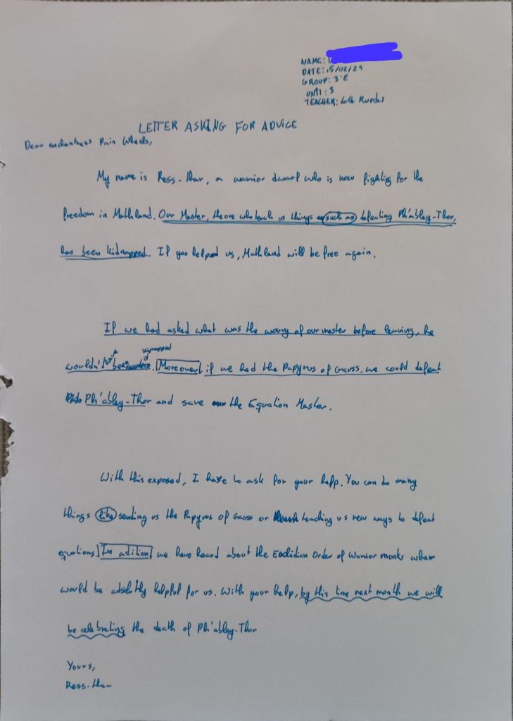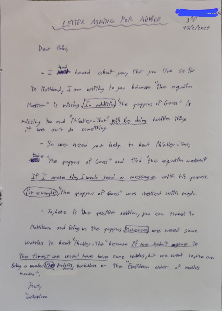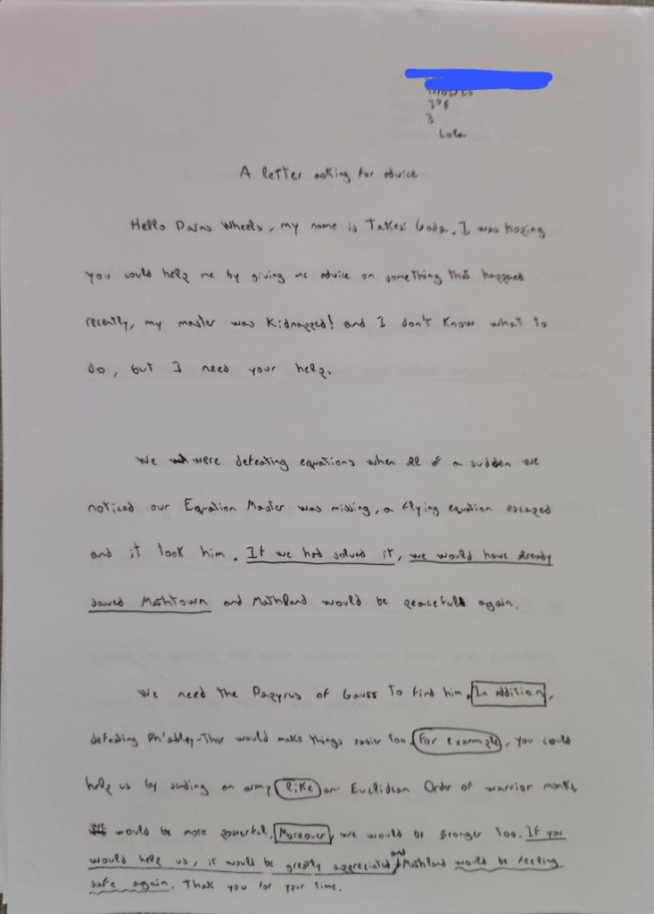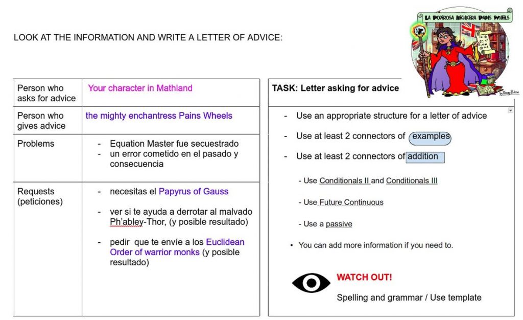 Si habéis seguido la historia, los aventureros y aventureras se ven en una situación desesperada y necesitan pedir ayuda a la poderosa hechicera Pains Wheels que vive más allá del Mar Algebraico. Debían escribir cartas para mandar mediante grajos mensajeros al hogar de la misteriosa hechicera solicitando el arcano Papiro de Gauss y la ayuda de la orden de monjes guerreros euclidianos. Y, por supuesto, las cartas debían escribirse en la extraña lengua de los habitantes de más allá del mar…