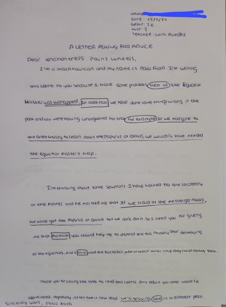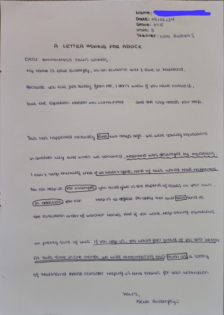 Writings con Ecuación Mortal 2 (3ºESO, Curso 2023-2024)